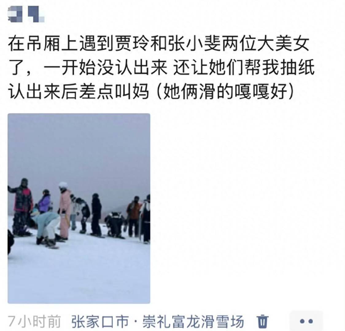 谁在崇礼富龙雪场偶遇神仙闺蜜!贾玲张小斐滑雪生图刷屏,两人在缆车吊厢里和路人亲切互动,张小斐脸上的卡通冻伤贴可爱到犯规!